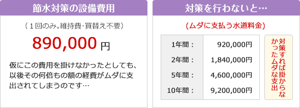 | 水道料金(年) | 節水対策費 | 節水率 | 年間削減額 |